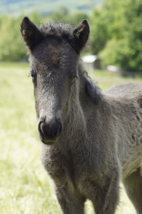 Wohl proportioniertes, hoch aufgerichtetes Hengstfohlen mit viel Präsenz und Ausstrahlung. Zeigte sich geschmeidig, bei guter Balance in den Grundgangarten, sowie deutlichem Töltansatz.