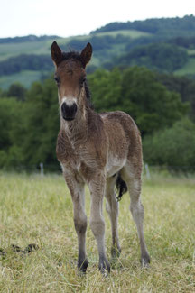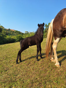 Weit entwickeltes, elegantes und harmonisch gebautes Stutfohlen, fünfgängig veranlagt mit guter Balance und Gangtrennung, sowie raumgreifenden Bewegungen.