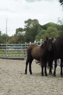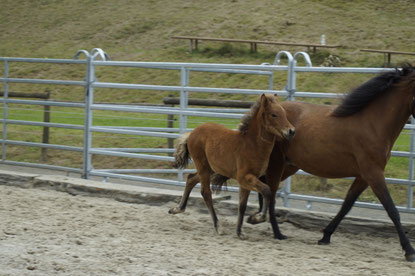 Kräftiges Stutfohlen mit viel taktklarem Naturtölt, bei mittlerer Bewegung und deutlicher Neigung zum Kreuzgalopp, zeigte heute wenig Lauffreude.