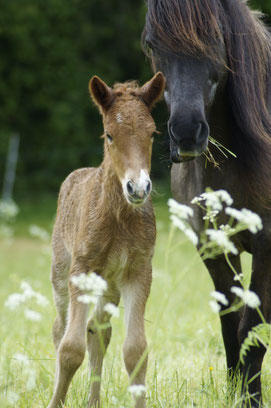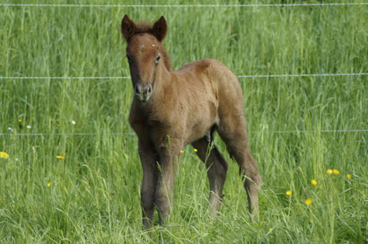 Harmonisch gebautes, gelassenes Hengstfohlen mit gutem Takt und lockerem Bewegungsablauf in allen Gängen, besonders im Tölt.